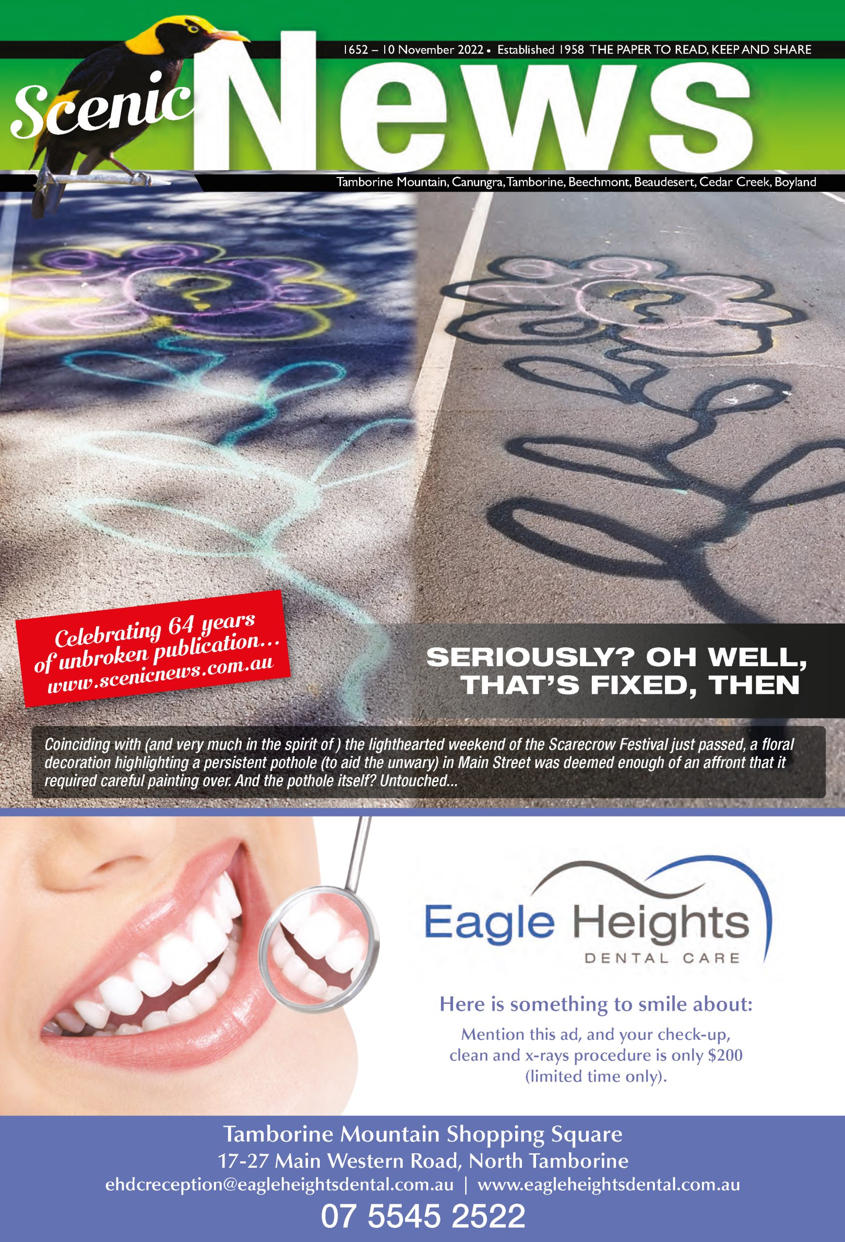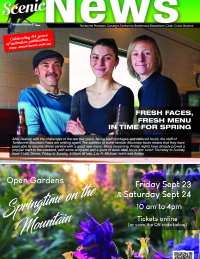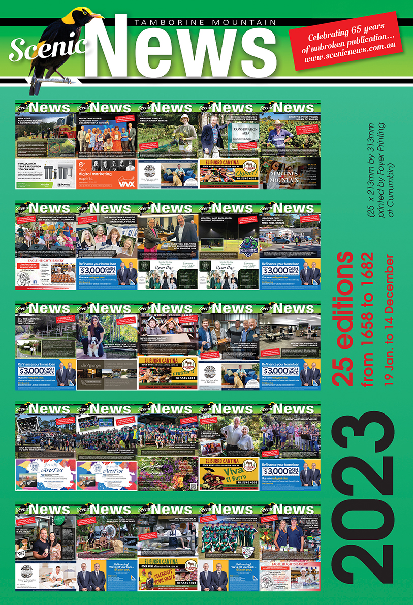 The Scenic News/Tamborine Mountain News was the most widely distributed (7400+ copies per edition) free community newspaper in the Scenic Rim between 2016 and 2013.